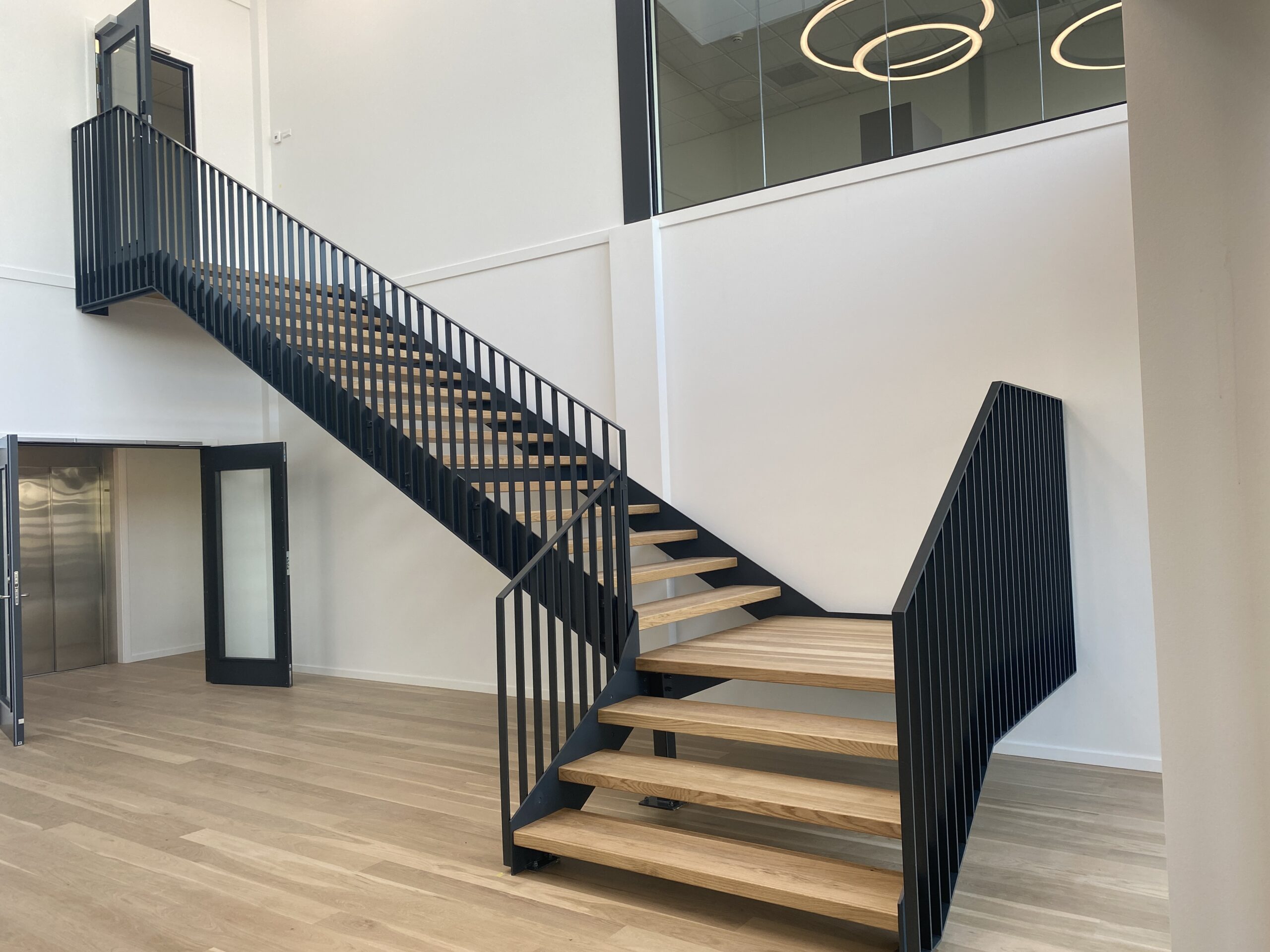 Indervægge er beton elementer og lette indervægge af stålskelet, der beklædes med fibergips samt glaspartier i møderum.